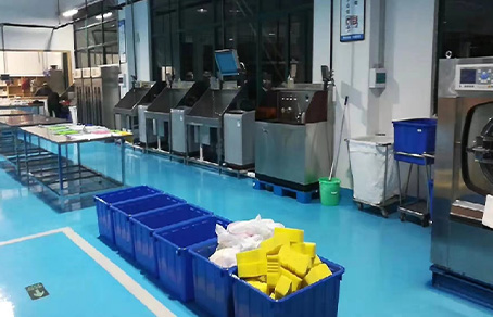 公司不仅拥有3900平方的生产厂房还拥有先进的进口全自动洗涤设备与国产高性能实用的洗涤设备
